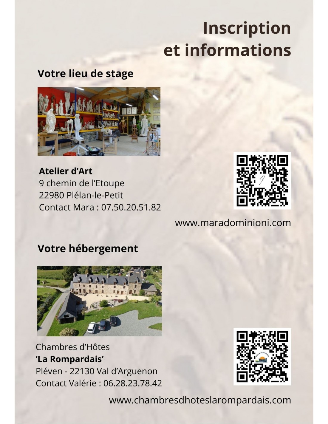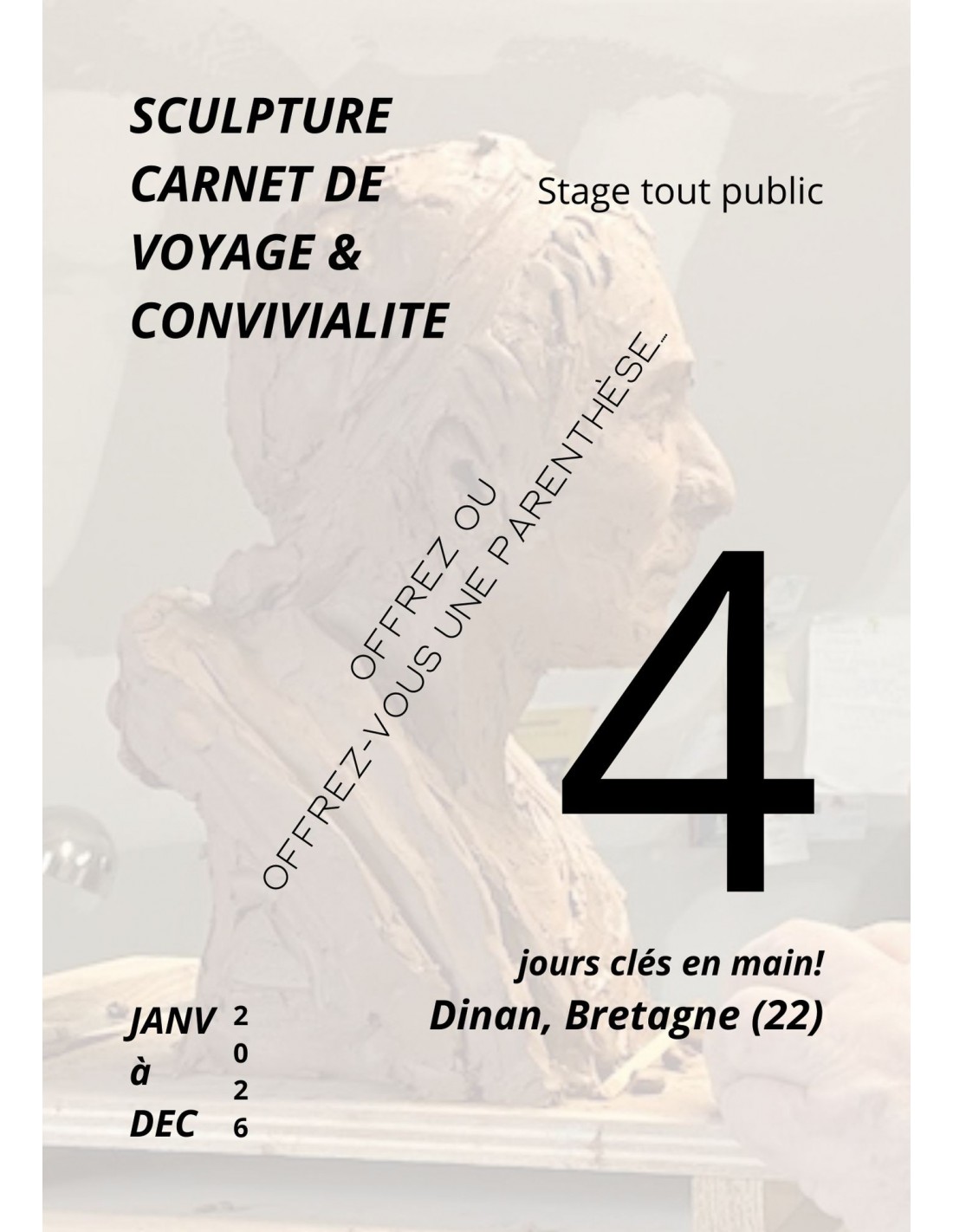 Clé en main, l'artiste Mara Dominioni vous acceuille 4 jours dans son atelier de sculpture pour du modelage et promenades dans les alentours pittoresques avec un carnet sous les bras pour capter la richesse poétique de notre Bretagne...